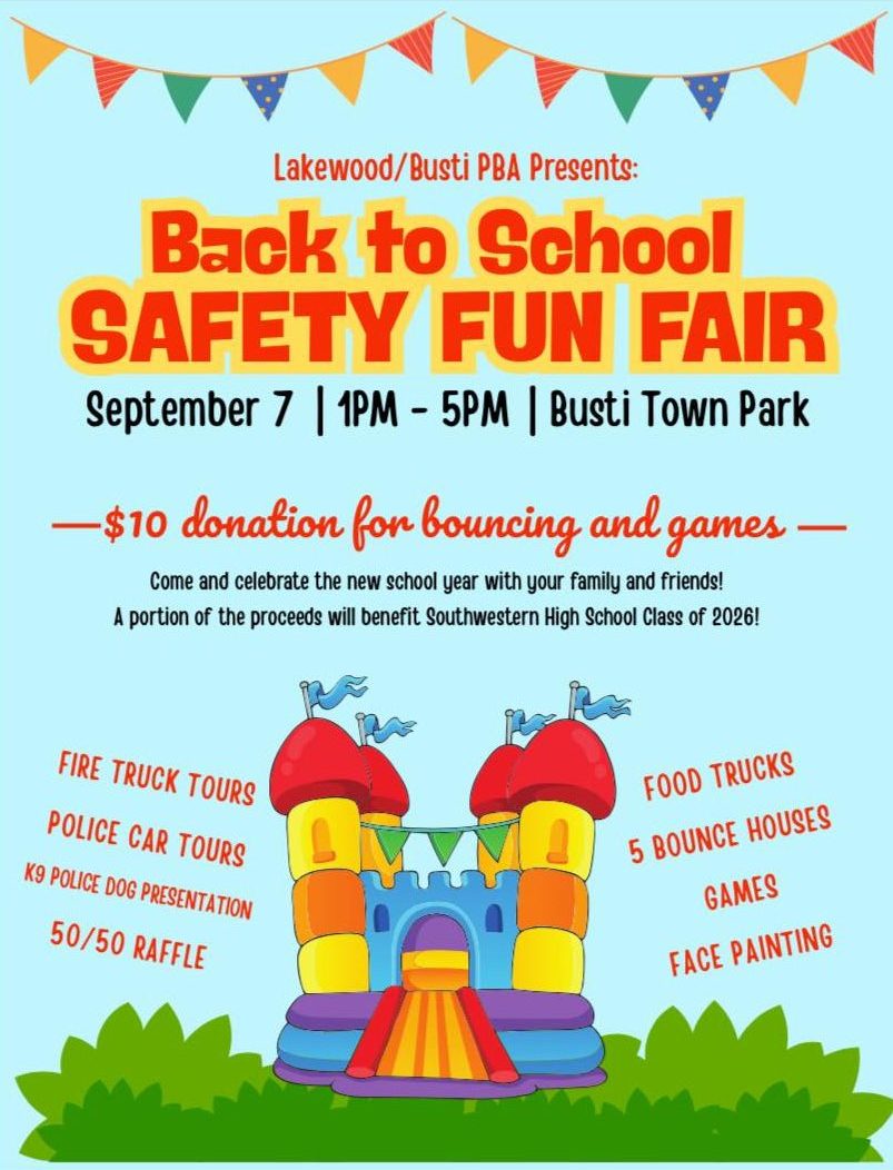 The Lakewood-Busti PBA is hosting a Back-to-School Safety Afternoon filled with activities, safety tips, and fun for the whole family.