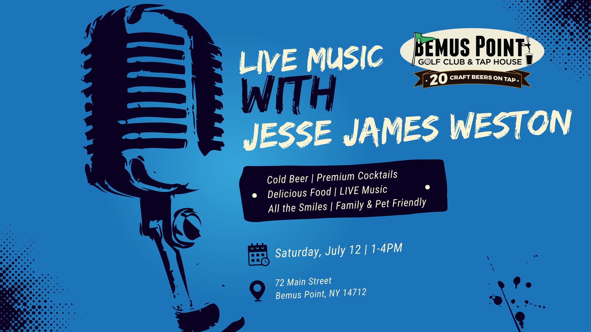 Join us on Saturday, July 12 from 1 to 4 PM at the Bemus Point Golf Club & Tap House for an afternoon of live music with Jesse James Weston, solo act, big heart, all the good feels.