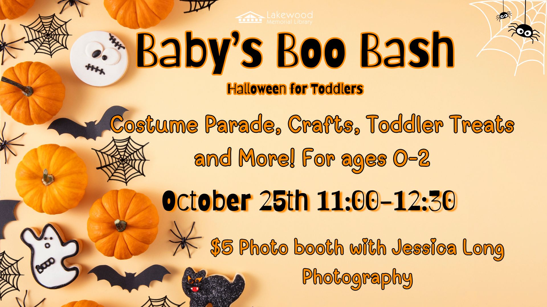 Trick or Treating is often a candy grab. It’s a lot of fun, but not so easy for the babies to feel included. We’re throwing an event for them. There will be tables and stations to visit set up throughout our space. Babies can have the “visiting the neighbors” experience. We’ll have a themed hand print craft station set up, because those are the cutest ones to hang on your fridge. And paint is messy, we know, but you don’t have to bring the wipes, we’ve got you covered. We’ll have a costume parade at 11:45, weather permitting we can take that outside to share with the village. An added bonus to this event will be the $5 photo booth! Jessica Long Photography will be taking pictures at $5 a head in front of a her very cute and spooky backdrop. That promises to be a great keepsake! On your way out, we’ll have a goodie bag table set up with toddler appropriate snacks and treats. Join in on the fun this year, and you don’t even have to stay up past your bedtime. This event is for ages 0-2