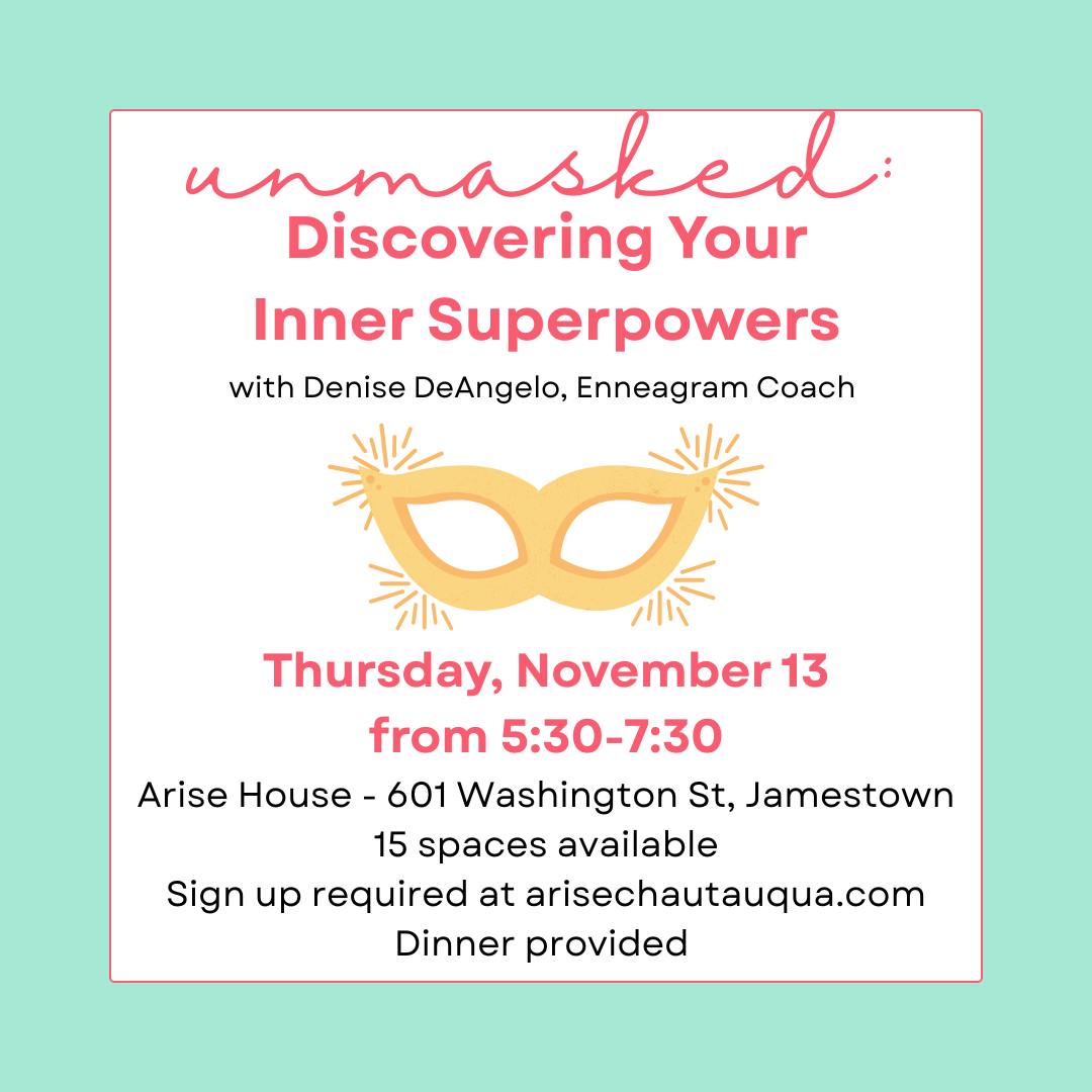 We’re excited to invite 15 girls (ages 11-18) to our first Life-Skills class of the 2025-2026 program year, Unmasked Discovering your Inner Superpowers with Denise DeAngelo, Enneagram Coach from A Place at the Table!