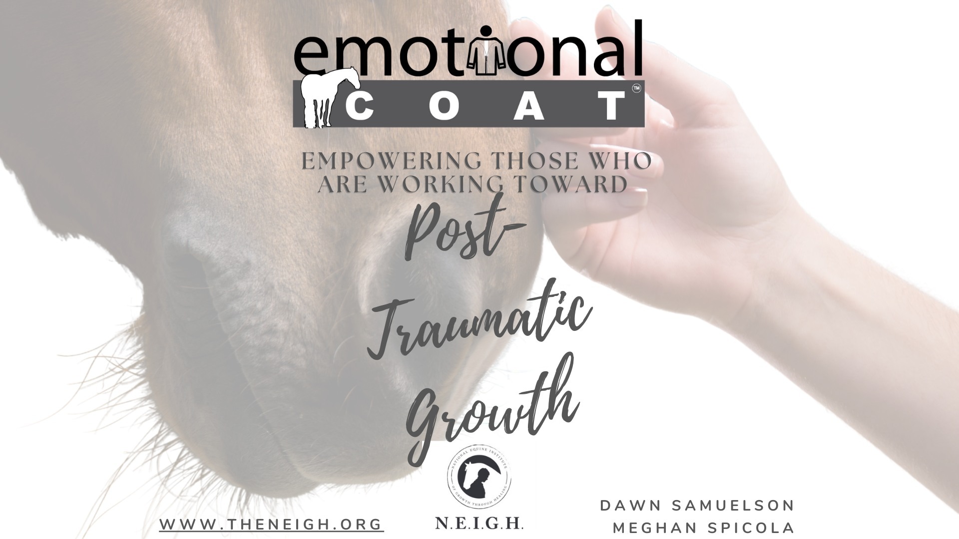 Join us in a 3 consecutive (Friday-Sunday) Day Training of the Emotional Coat: An Equine Assisted Service model to start or add to your existing equine program! Please choose which month you would like to register, as there are multiple sessions. This program is targeted to provide services to clients in need of post traumatic growth. Additional trainings will be available for in depth and specific groups of clienteles upon completion of The Emotional Coat Certification including Veterans, First Responders, Women, Youth and Families.