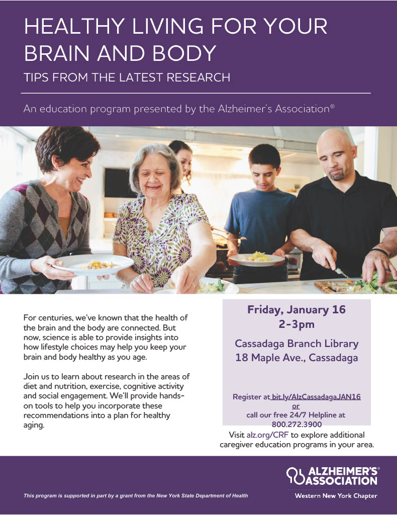 For centuries, we’ve known that the health of the brain and the body are connected. But now, science is able to provide insights into how to make lifestyle choices that may help you keep your brain and body healthy as you age. Join us to learn about research in the areas of diet and nutrition, exercise, cognitive activity and social engagement, and use hands-on tools to help you incorporate these recommendations into a plan for healthy aging.