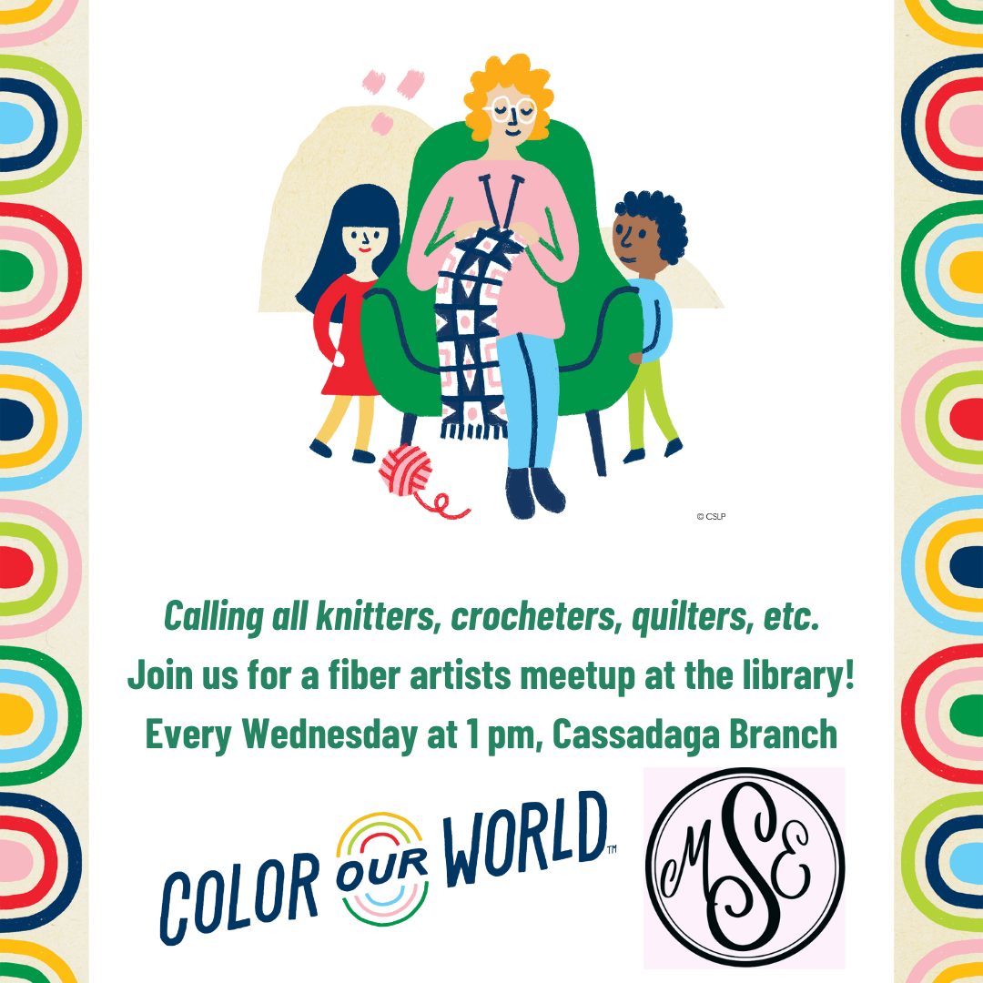 Join us at the Cassadaga Library for knitting and crocheting every Wednesday at 1pm. If you are learning and need supplies we have plenty.