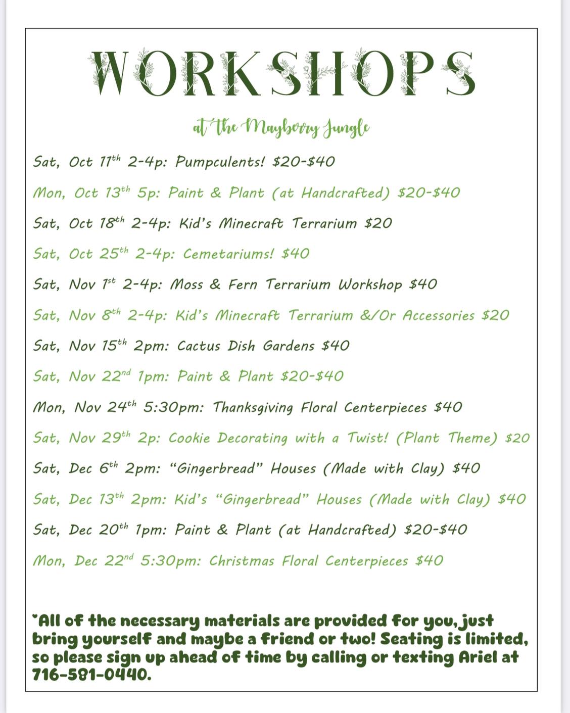 - 11/1 – Moss & Fern Terrarium Workshop