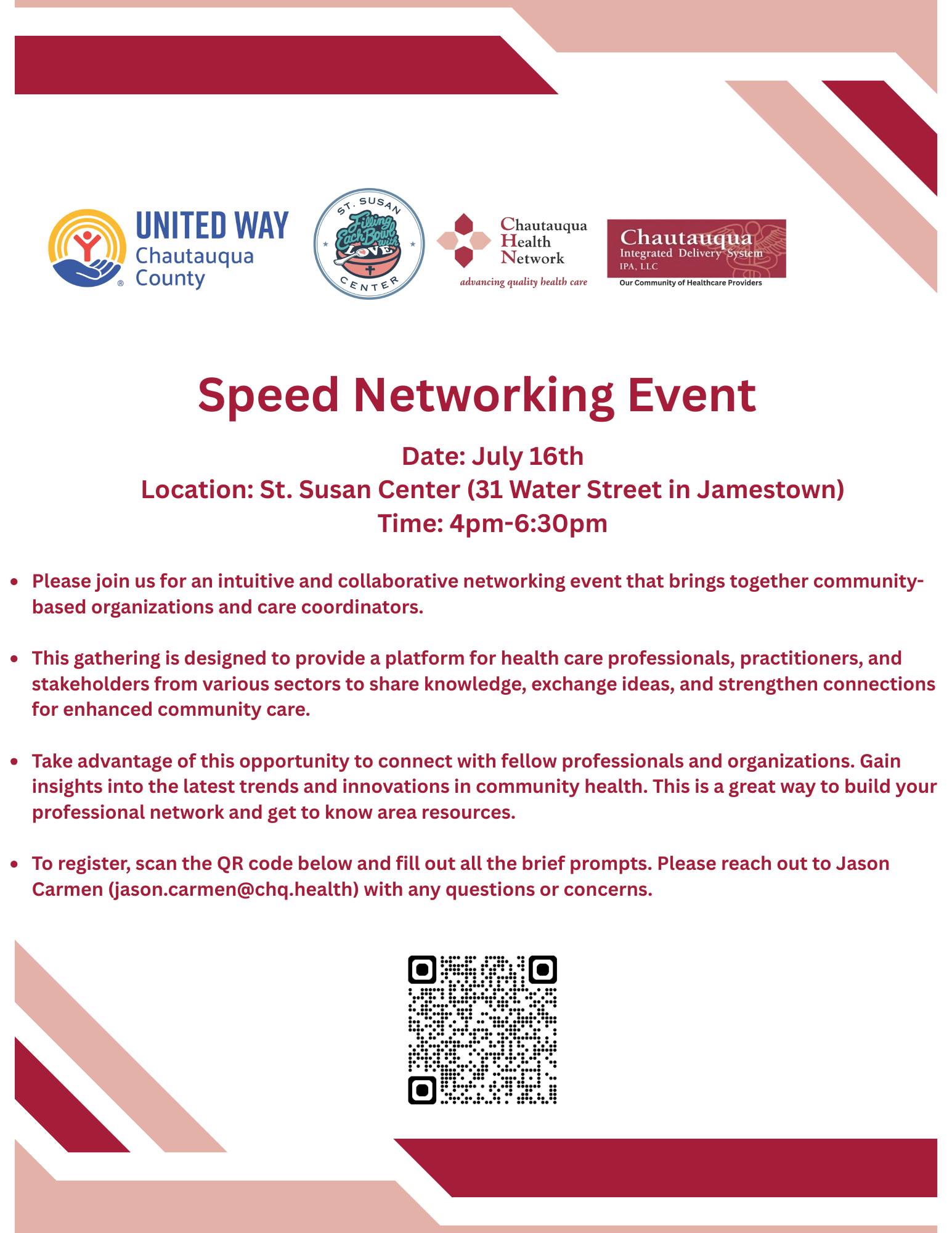 A collaborative networking event for community-based organizations and care coordinators will be taking place on July 16th at St. Susan Center.