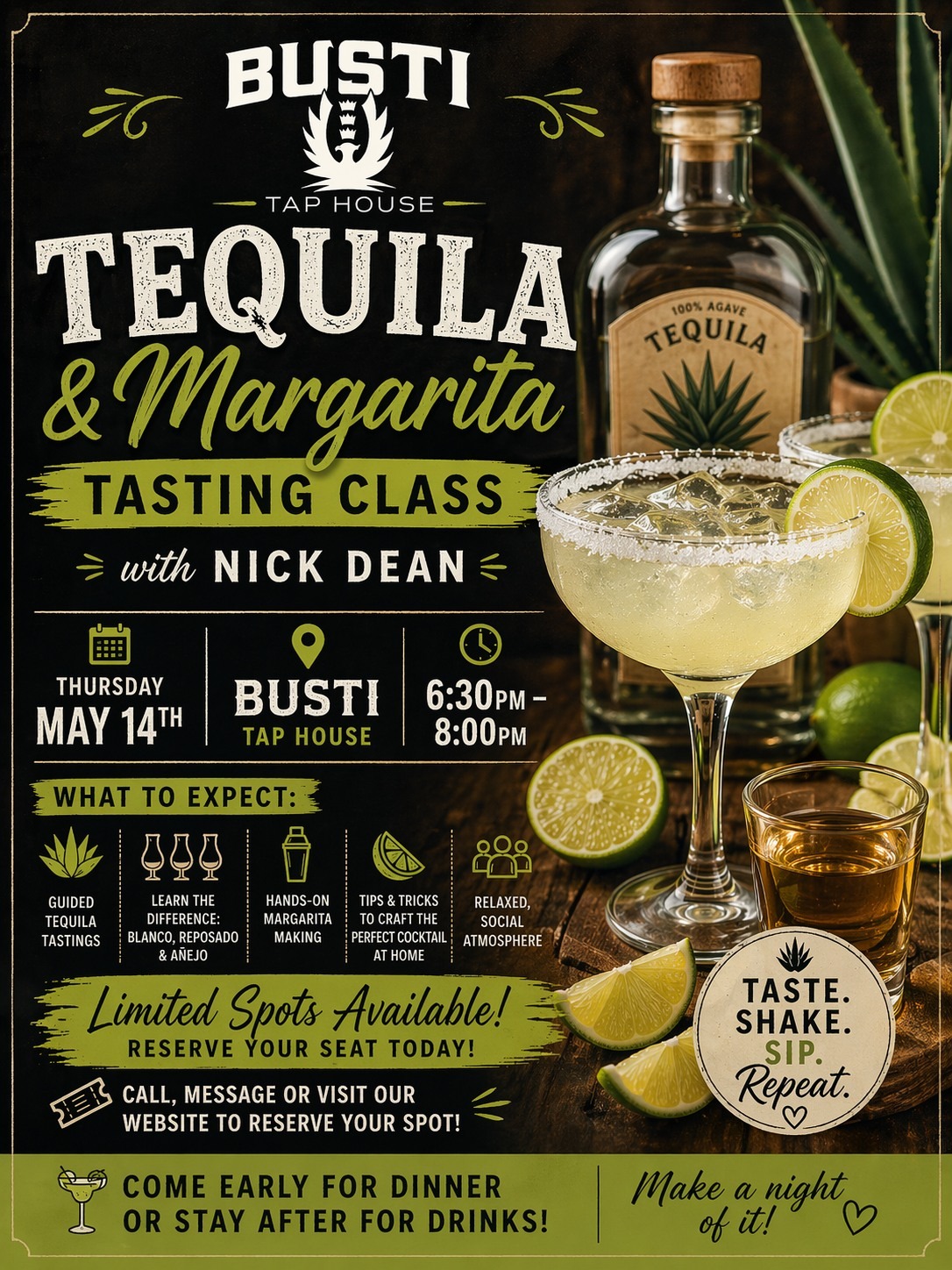 Get ready to shake things up! Join us at Busti Tap House for a fun, interactive Tequila & Margarita Tasting Class led by the one and only Nick […]