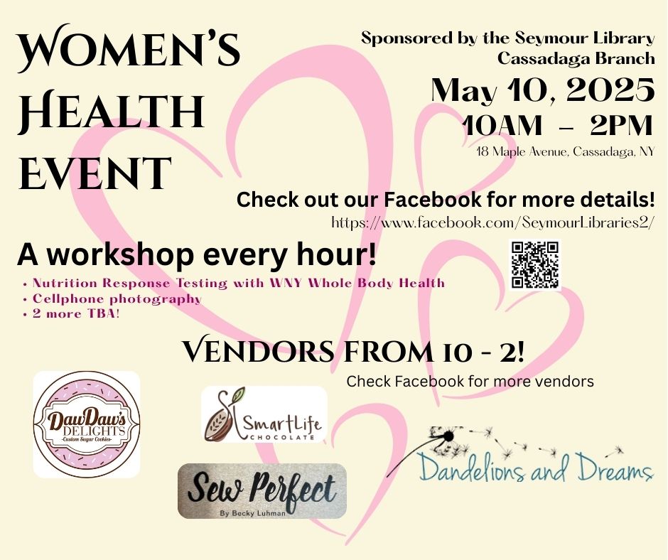 Be sure to stop in for a workshop, or to check out our vendors! This Women's Health Event has something for everyone!