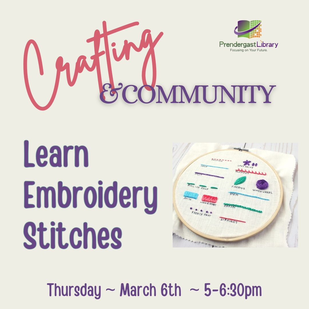 Bring your knitting, crocheting and embroidery projects and work together in community!