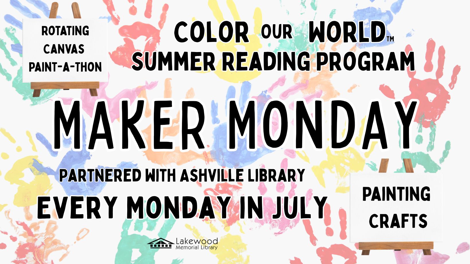 Join us for our expanded Maker Mondays for the month of July, 2-4pm. We're collaborating with Ashville Library for a large canvas-exchange-paint-a-thon. Be a part of a lasting […]