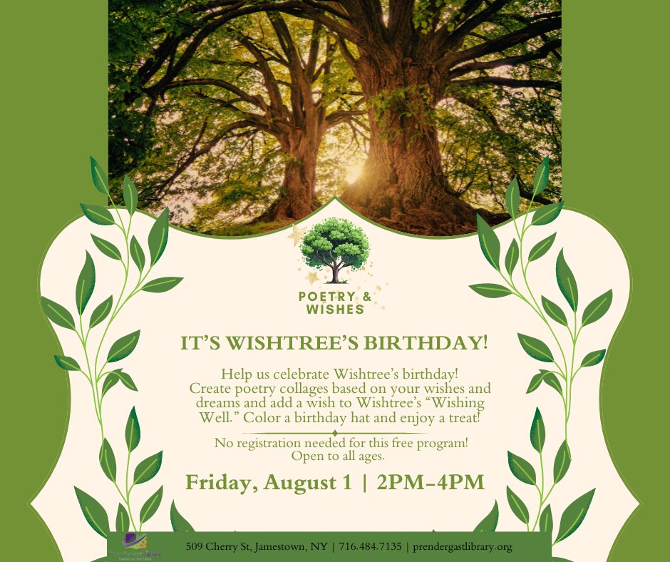 Join us Friday, August 1, at 2pm to celebrate Wishtree’s birthday! Create poetry collages based on your wishes and dreams and add a wish to Wishtree’s “Wishing Well.” […] |