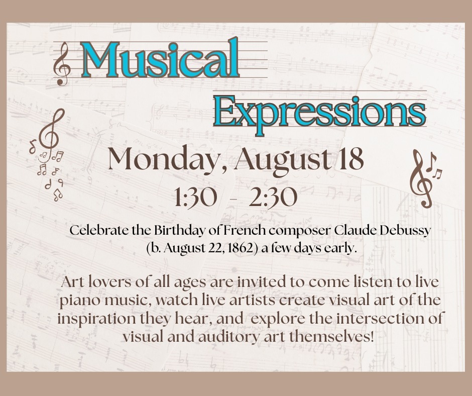 Join us on Monday, August 18th at 1:30pm as we commemorate the birthday of renowned French composer Claude Debussy (born August 22, 1862) a few days in advance. […]