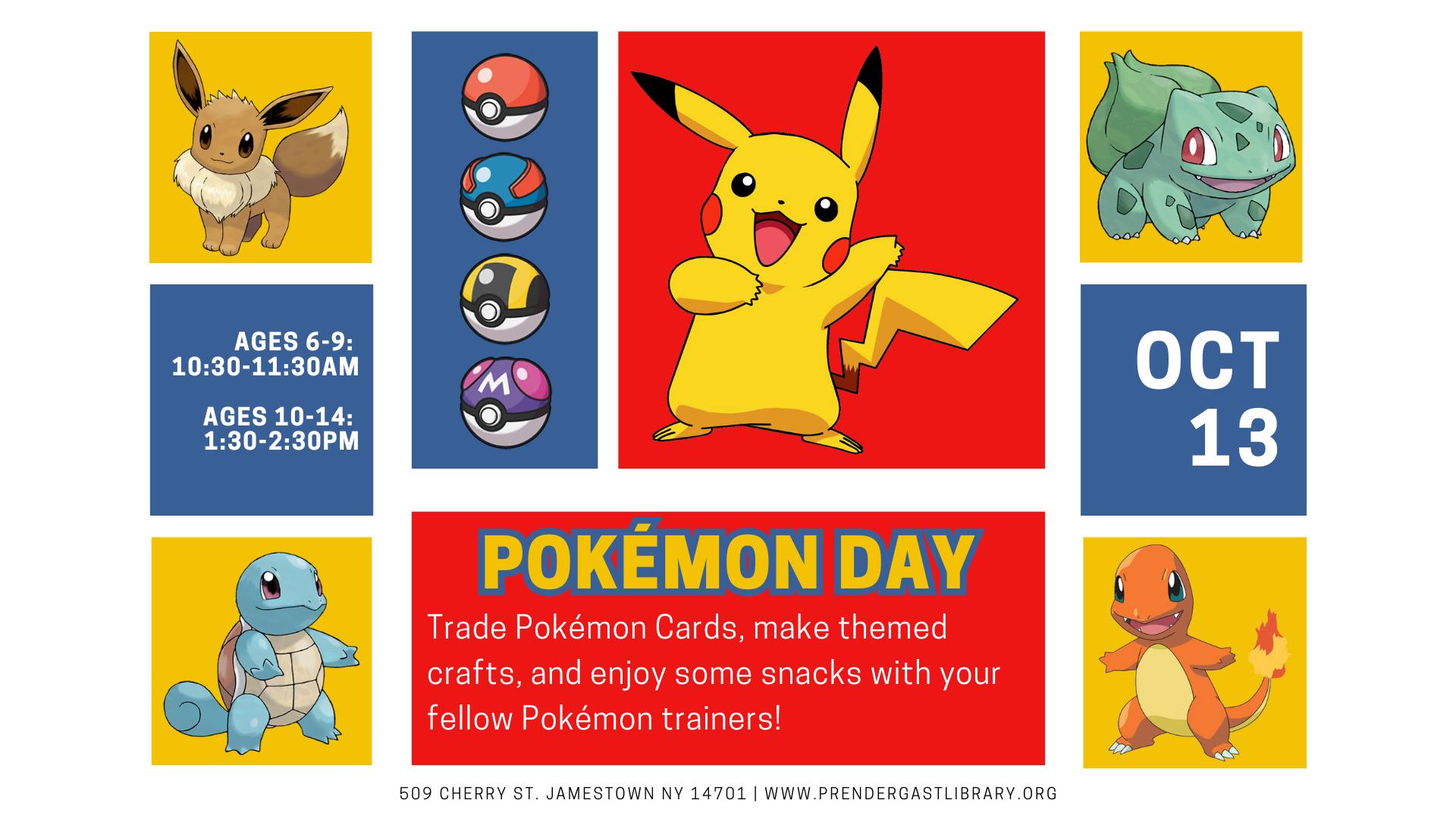 Get ready to catch em all! On October 13th, trade Pokemon cards, make themed crafts,and enjoy some snacks with your fellow Pokemon trainers! Two age groups available; no […]