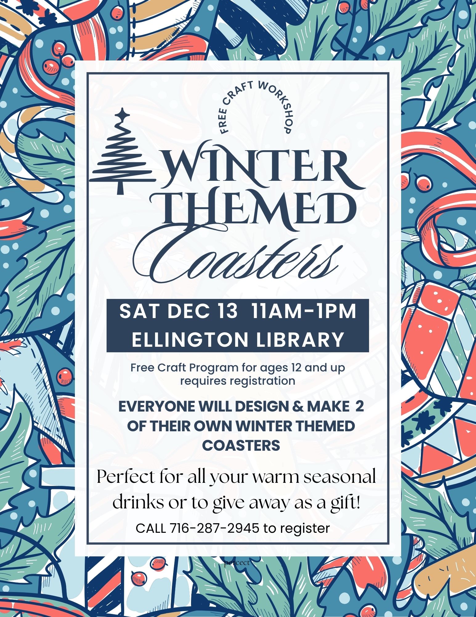 Free Craft program- everyone will get to design and make 2 holiday themed coaster. Perfect for all your warm seasonal drinks or to give as gifts! registration required, […] |