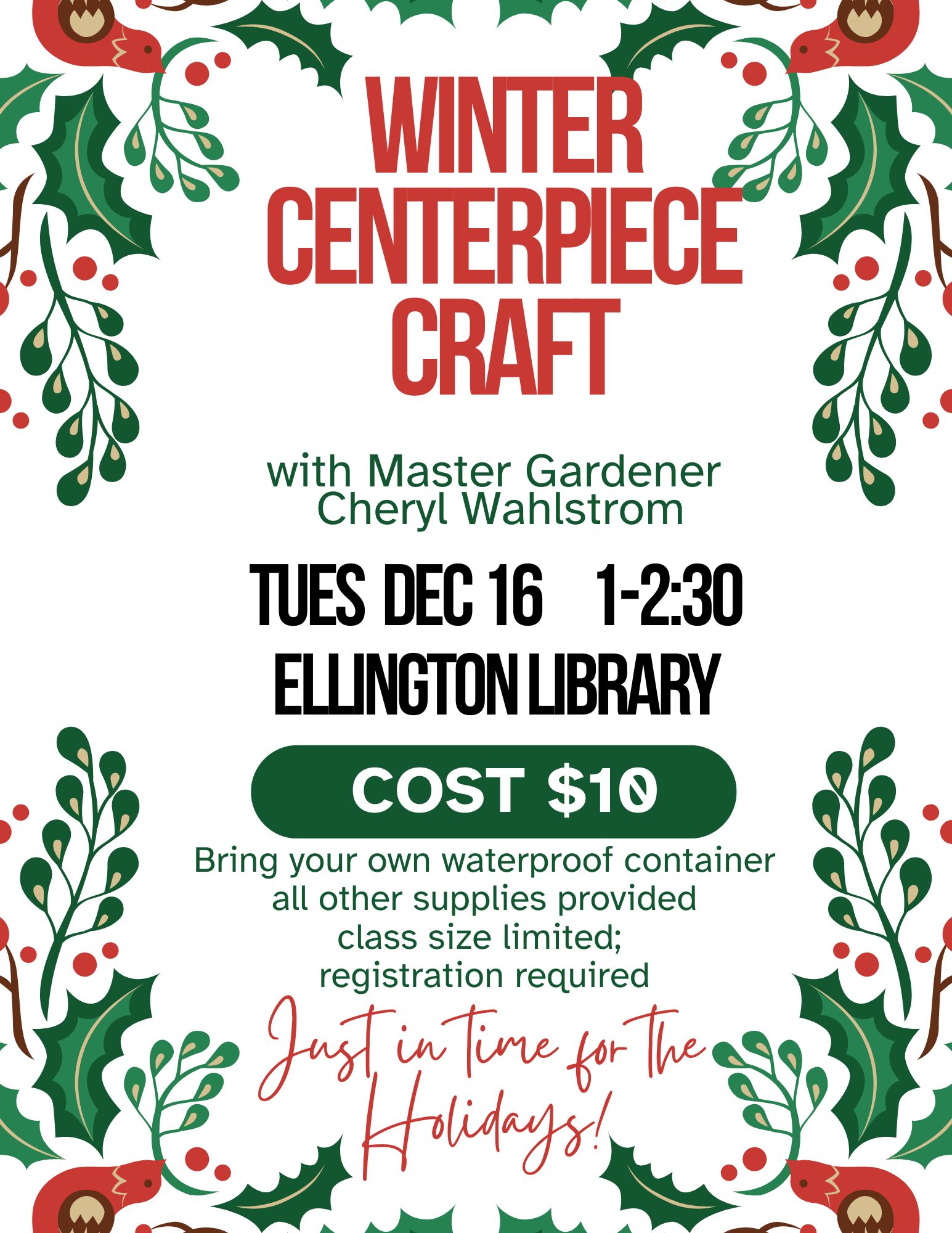 Join master Gardener Cheryl Wahlstrom as she leads you in creating your own live greens centerpiece- perfect for your holiday table! Cost is $10 each payable at time […]