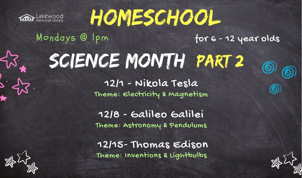 December is Science Month Part 2 in our Homeschool Program! Join us the first three Mondays at 1 PM as we explore the lives and discoveries of some […]
