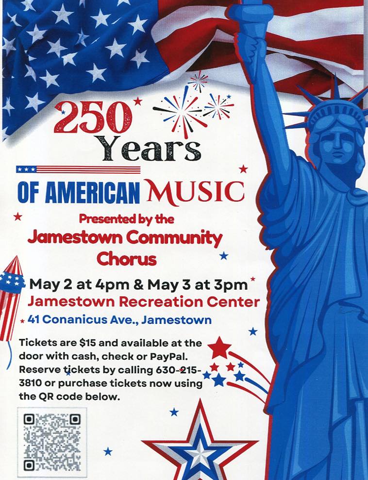 Mark your calendars and get ready to enjoy a once in 250 years event as the Jamestown Community Chorus celebrates our country’s semiquincentennial . The music features all […]