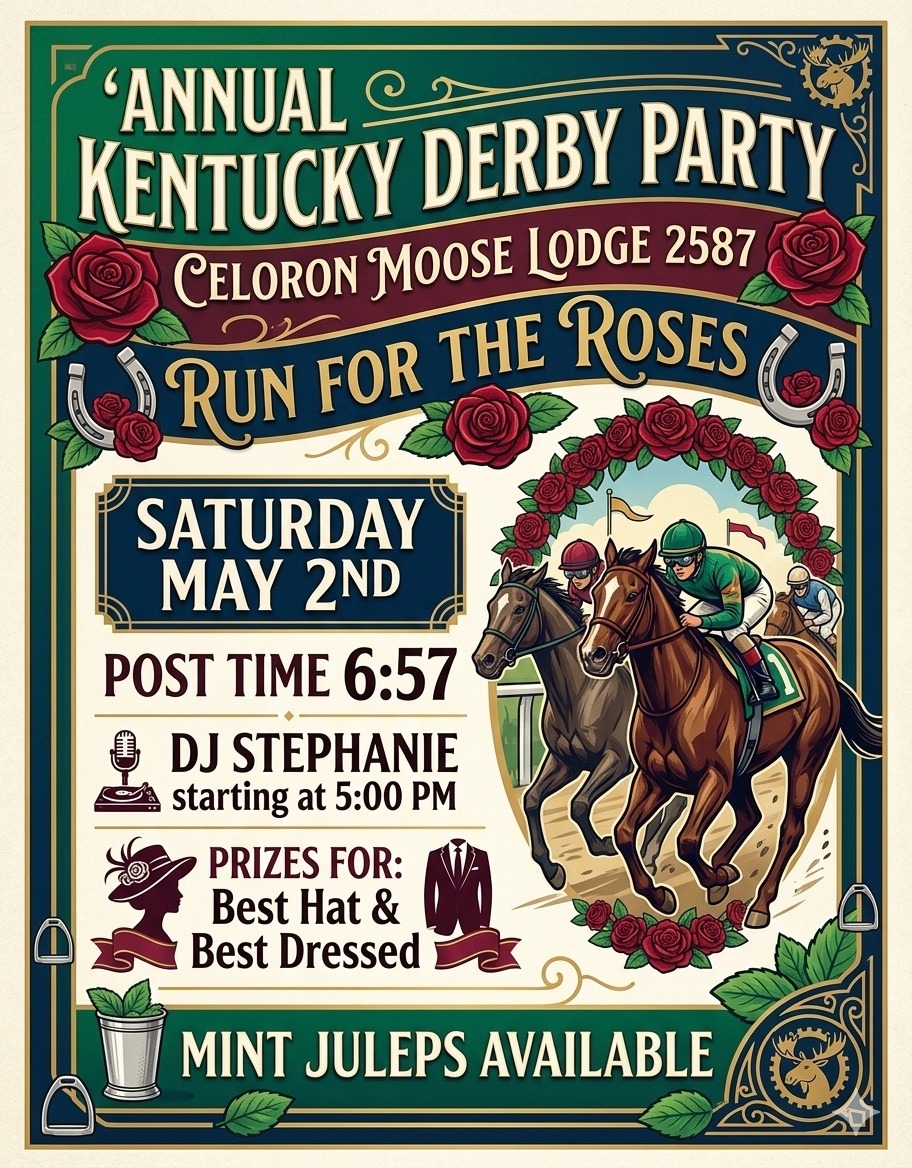 Annual Kentucky Derby Party with D.J Stephanie.Come dressed to impress - prizes for best dressed and best hat.Mint Julip’s will be available. Post time 6:57