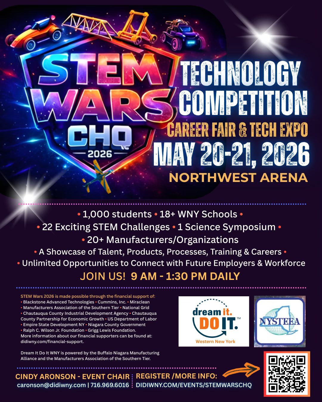 May 20 @ 9:00 am - 1:30 pm STEM Wars CHQ 2026 – Career Fair and Tech Expo