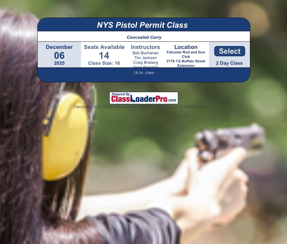 Falconer Rod and Gun Club NYS Concealed Carry Pistol Permit Class Description. This is the class you need to complete to apply for your NYS concealed carry pistol […]