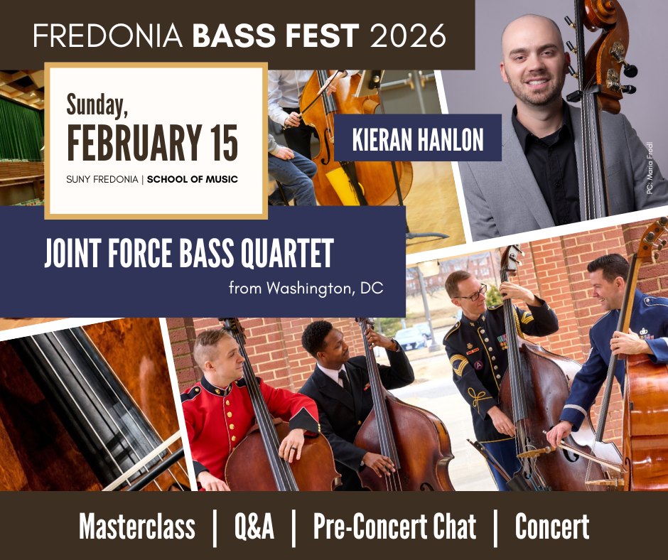 We are thrilled to feature the Joint Force Bass Quartet for the 2026 Fredonia Bass Fest on Sunday, February 15. Live from Washington DC, the Joint Force Bass […]
