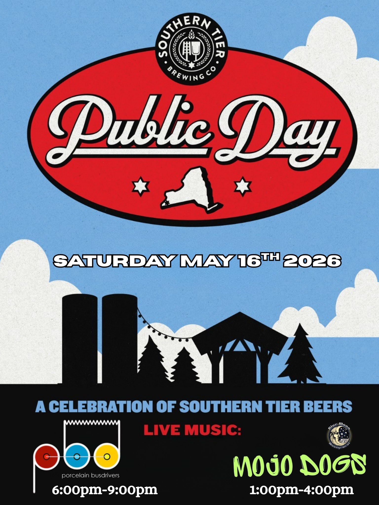 ANNOUNCING..... Public Day 2026! Featuring "Porcelain Busdrivers"+"MoJo Dogs"LIVESaturday May 16th 2026Stage at Southern Tier Brewing2072 Stoneman CircleLakewood, NY 147501:00pm-4:00pm MoJo Dogs6:00pm-9:00pm Porcelain BusdriverFree All AgesFamily + Pet Friendly