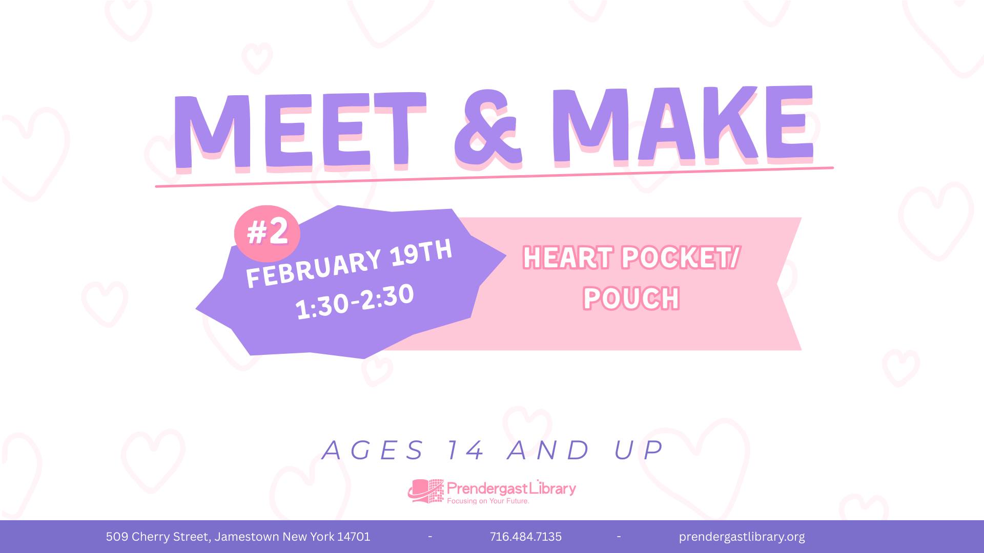 On February 19th from 1:30-2:30pm, join us at the library to make Heart Pocket pouches! Materials will be provided.See you there! |