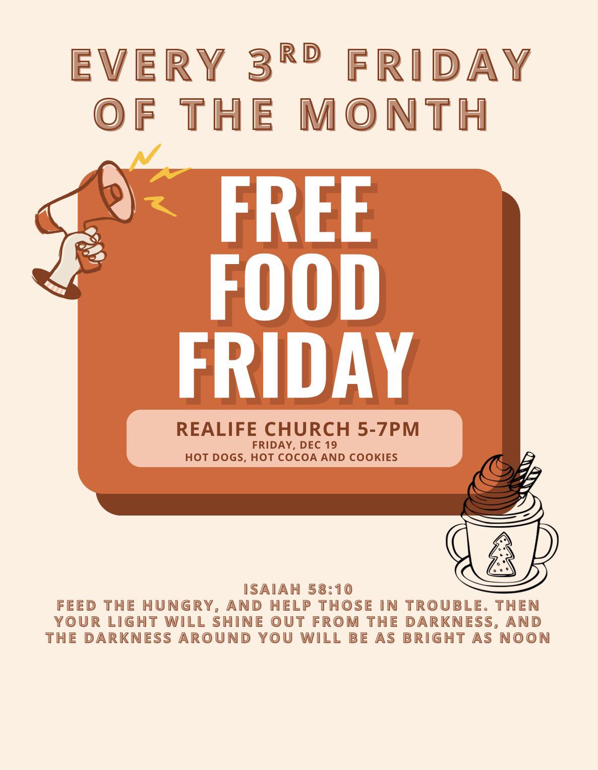 Hey everyone, we will be hosting Free Food Friday on the third Friday of each month at REALiFE Church from 5 - 7 pm.*WAYS TO HELP*SHARE this event!DONATE: […]