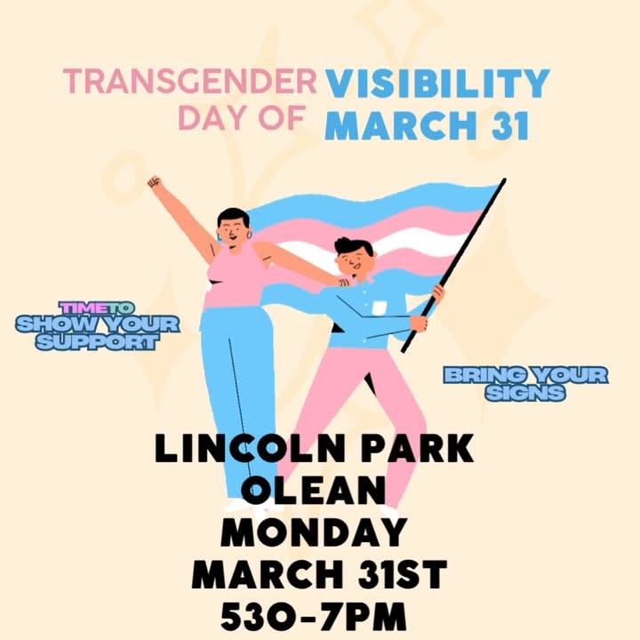 Lincoln Park 131 S Union St, Olean, United StatesWe will gather together at Lincoln park to bring awareness to the International Transgender Day of Visibility. Please bring signs of awareness. This will be a silent protest. […]
