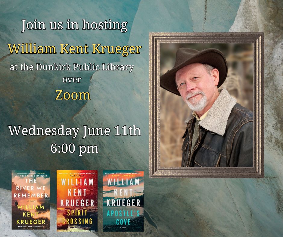 Join us Next Wednesday at 6:00 pm with author William Kent Krueger over Zoom!