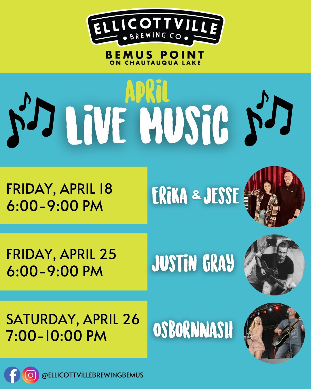 Ellicottville Brewing on Chautauqua 1 Main St, Bemus Point, United StatesJoin us for live music with Justin Gray!