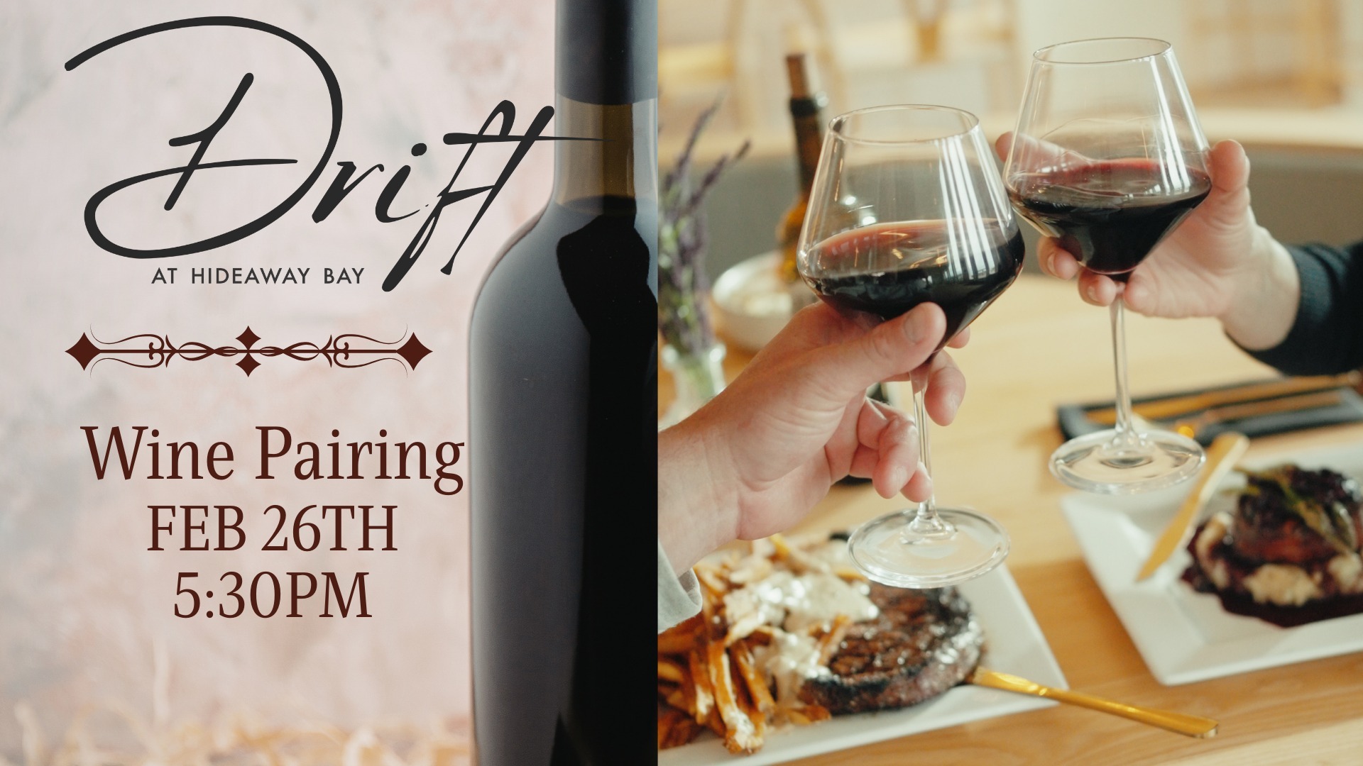 Raise a glass with us at Drift RestaurantExperience a perfectly paired night of wine and food on February 26th.Seats are limited — grab your tickets today!