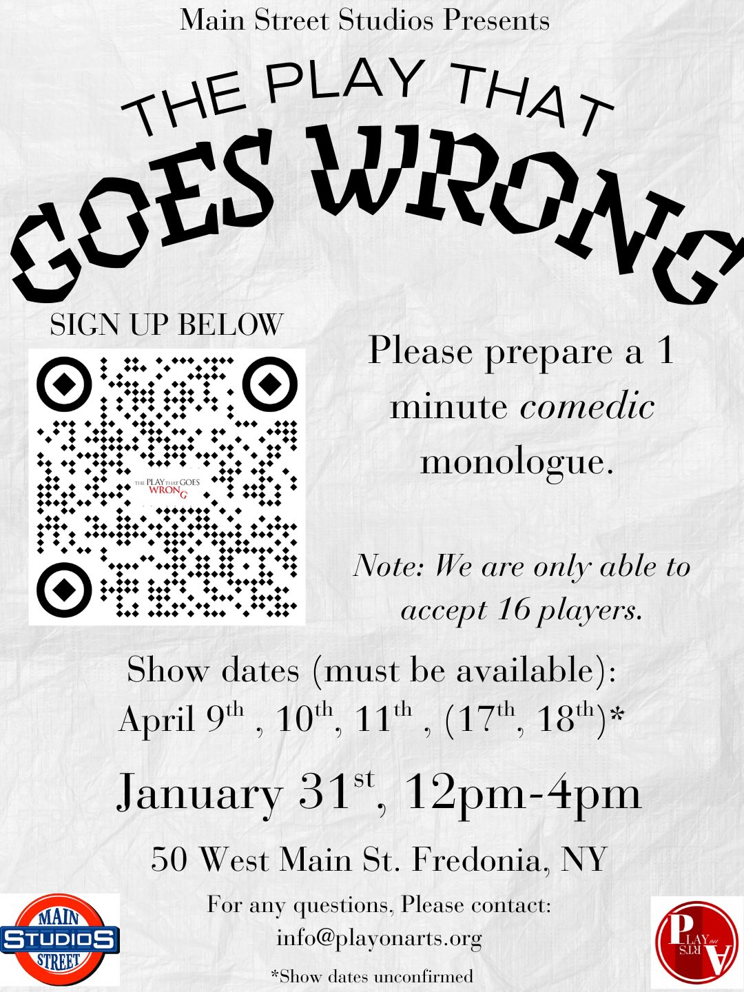 Main Street Studios 50 West Main St., Fredonia, NY, United StatesCome enjoy this classic Dickens tale brought to life by the talented community actors of Main Street Studios! $20 - Adult$15 - Student/Senior mainstreetstudios.seatyourself.biz