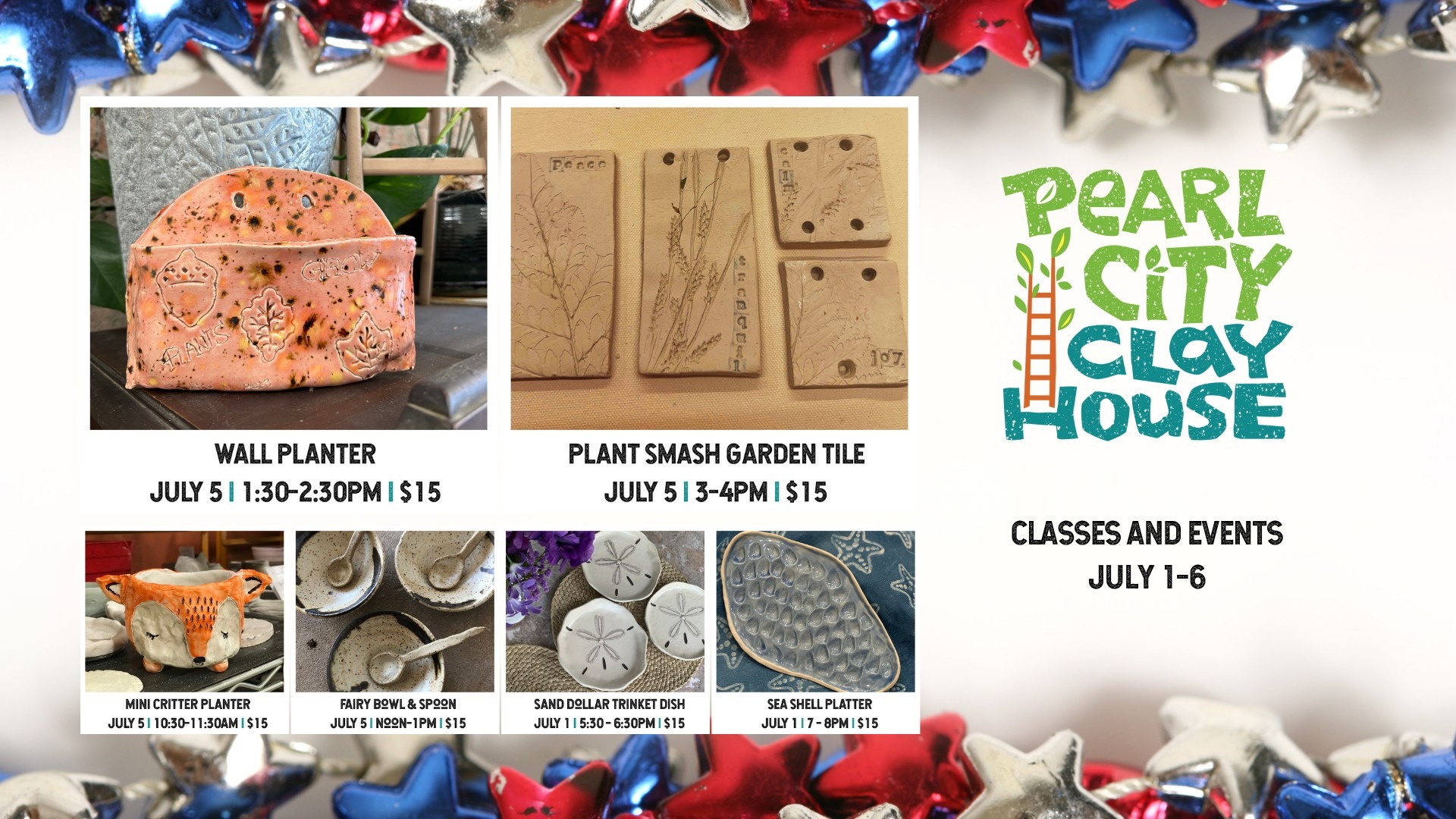 July 1-6 Classes & Events | Pearl City Clay House