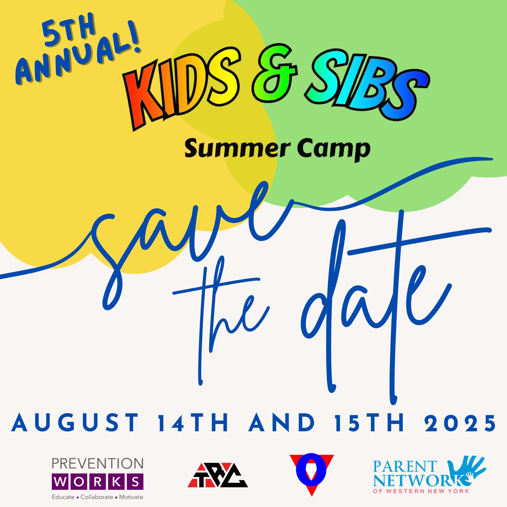 SAVE THE DATE!! 5th Annual Kids and Sibs Summer Camp at YMCA Camp Onyahsa on August 14th and August 15th! More information to come!