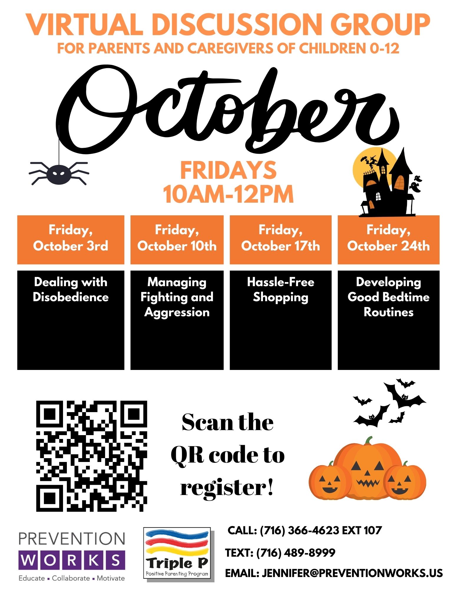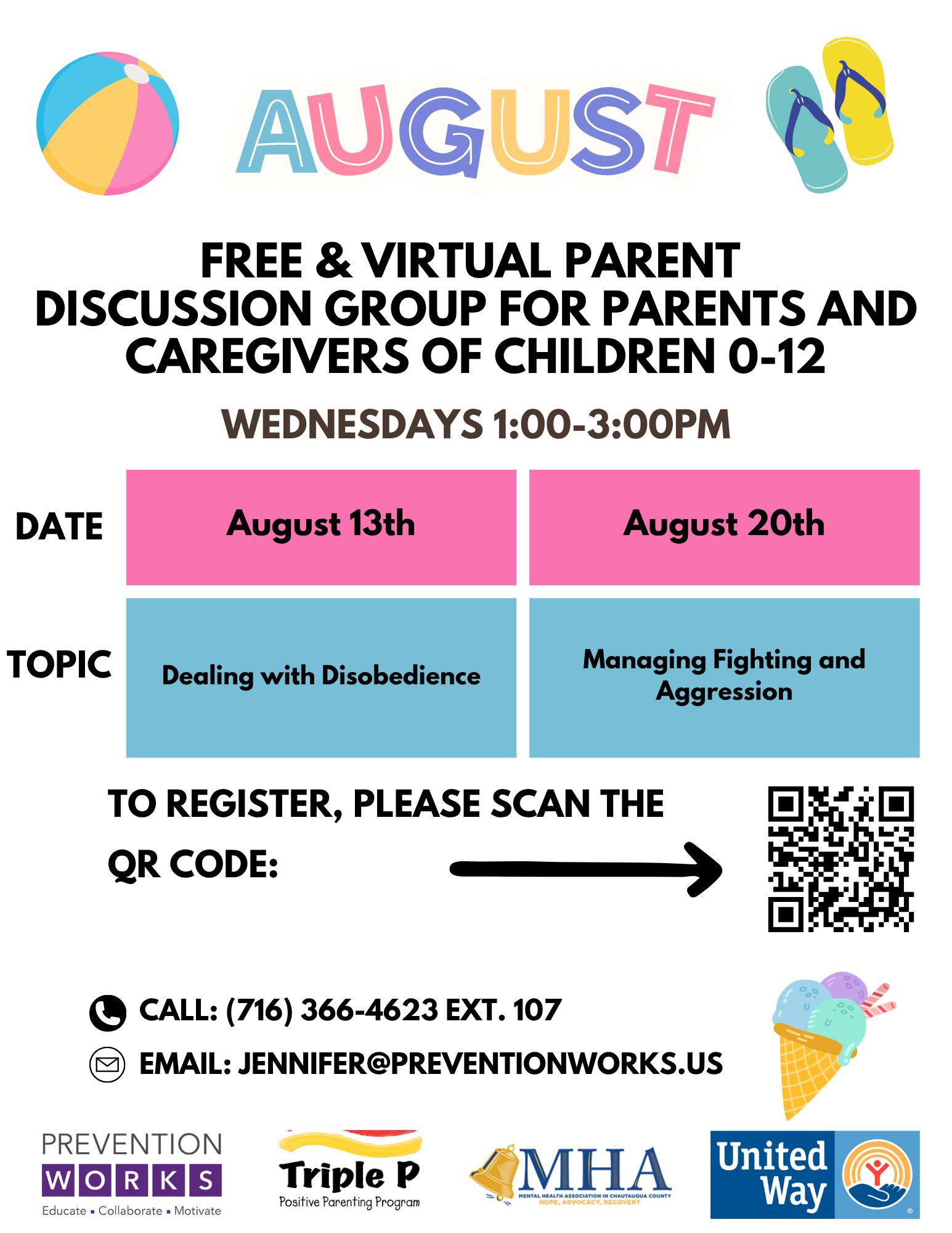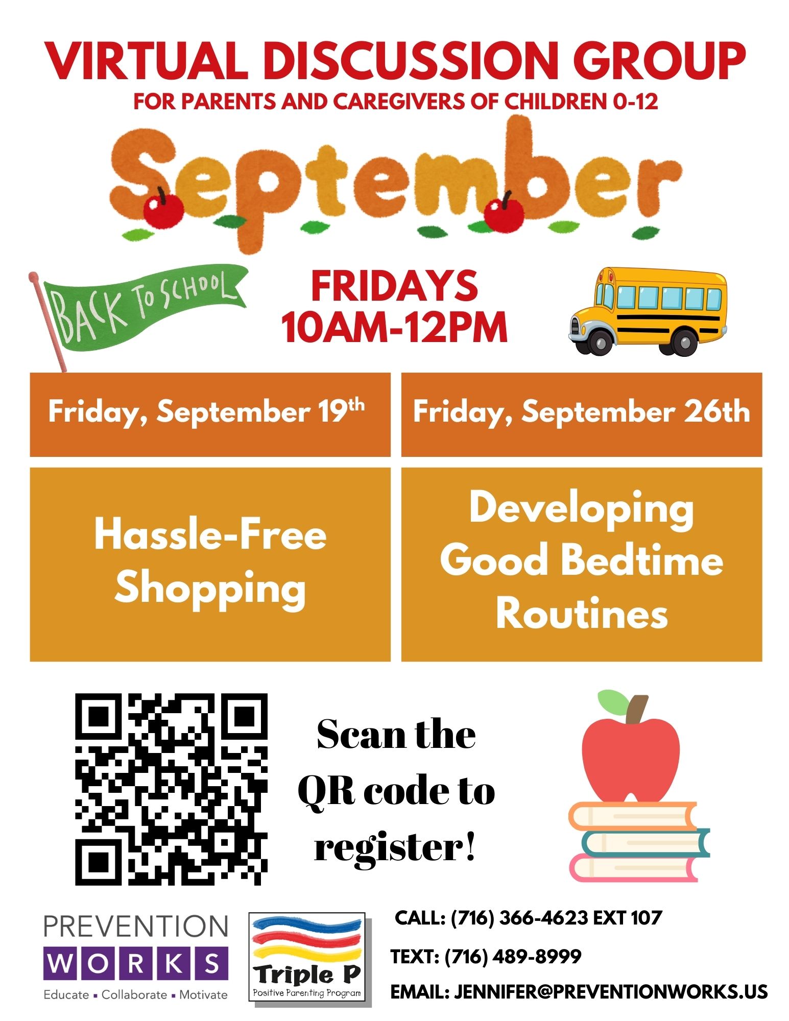 Join us virtually for Prevention Works' FREE Parent Discussion Group for parents and caregivers of children 0-12. Contact Jennifer at Jennifer@preventionworks.us or call (716) 664-3608 or text 716-489-8999 […]