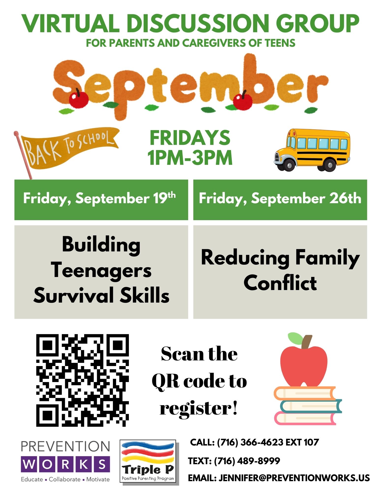 Join us virtually for Prevention Works' FREE Parent Discussion Group for parents and caregivers of teens. Contact Jennifer at Jennifer@preventionworks.us or call (716) 664-3608 or text 716-489-8999 for […]