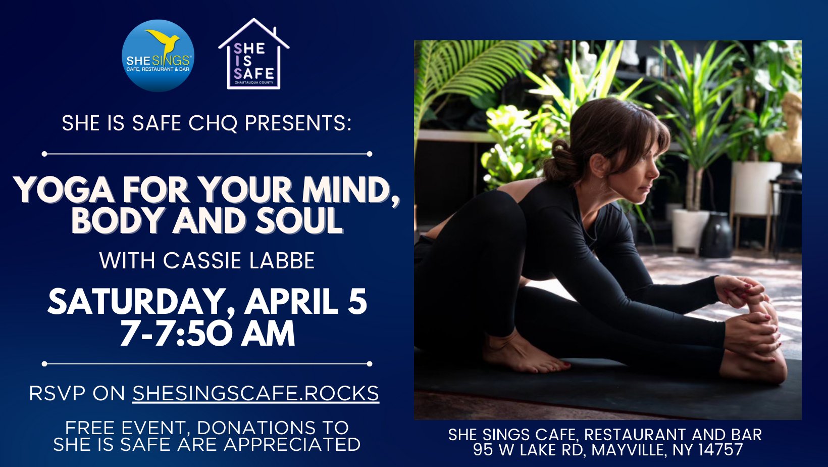 She Sings Cafe 95 West Lake Rd, Mayville, United StatesMark your calendars… YOGA for your Mind, Body and Soul. Easy stretching, breathing, sun salutations and more. You can make it as difficult as you’d like if you […]