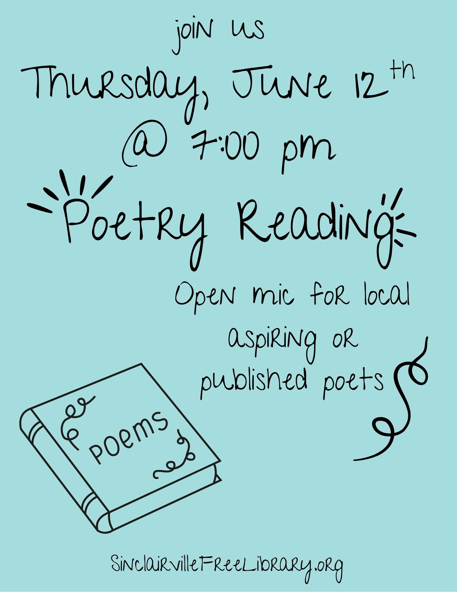 Join us on Thursday at 7:00 pm for a Poetry Reading with guest writer, K.E. Semmel.https://kesemmel.com/about/