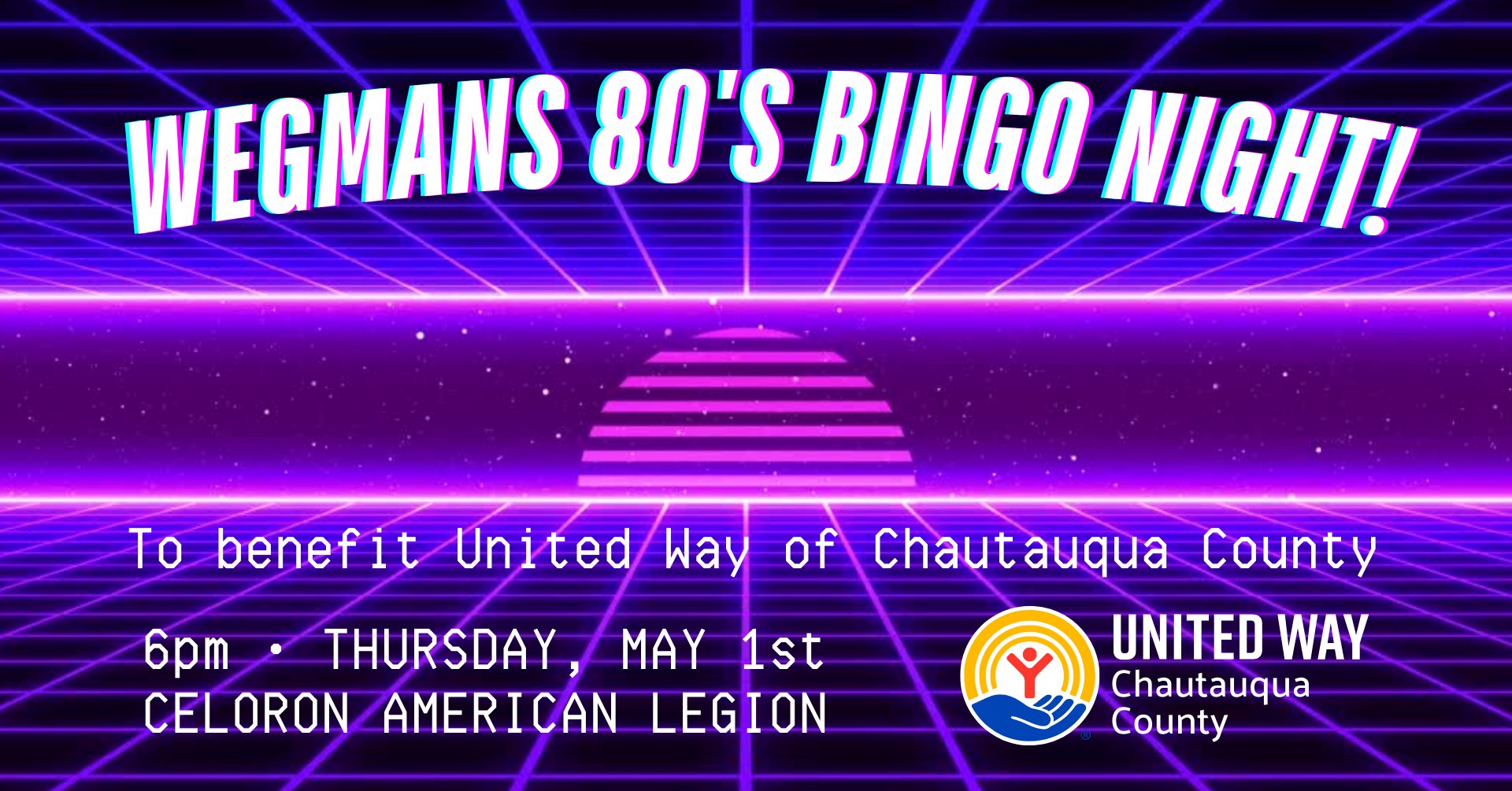 WEGMANS 80s BINGO NIGHTTo Benefit United Way of Chautauqua County 𝟓𝐩𝐦: 𝐃𝐨𝐨𝐫𝐬𝟔𝐩𝐦: 𝐁𝐢𝐧𝐠𝐨 𝐒𝐭𝐚𝐫𝐭𝐬𝐓𝐡𝐮𝐫𝐬𝐝𝐚𝐲, 𝐌𝐚𝐲 𝟏𝐬𝐭𝐂𝐞𝐥𝐞𝐫𝐨𝐧 𝐀𝐦𝐞𝐫𝐢𝐜𝐚𝐧 𝐋𝐞𝐠𝐢𝐨𝐧 Join Wegmans and United Way for a night of Bingo […]