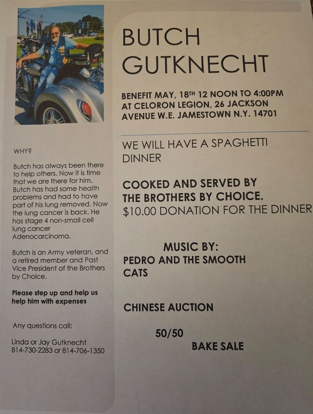 Sunday April 27th 2025Spaghetti Dinner Benefit for Steve Piazza llIn collaboration with the Brothers by Choiceand Blue Moon ManagementCeleron Legion Post 77726 Jackson AvenueJamestown, NY 14701 Music Line-Up12:00 […]