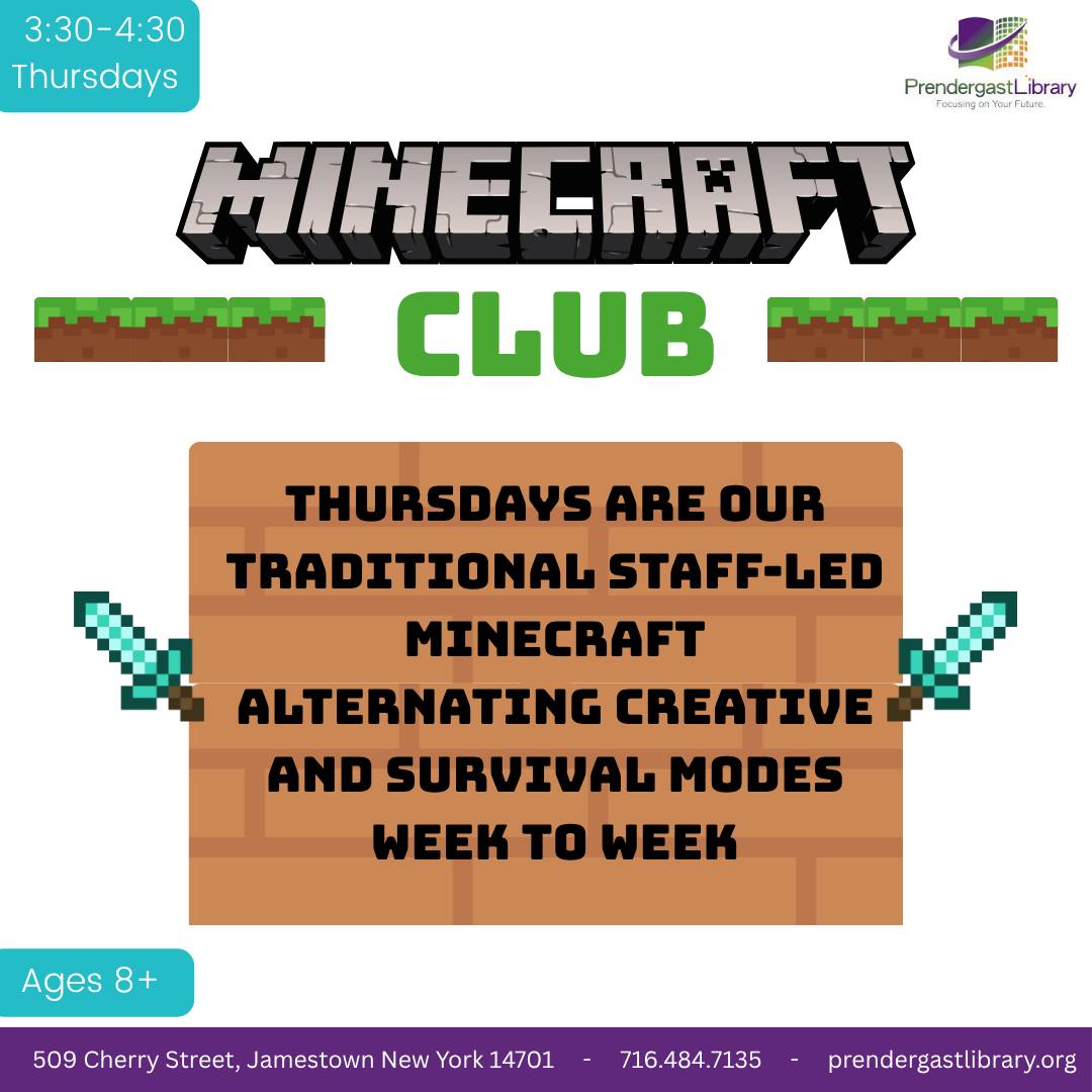 Join us for Minecraft Club on Thursdays from 3:30-4:30 for our traditional staff-led experience! Weeks will alternate between creative and survival modes. Tomorrow, October 30, 2025 will be […]