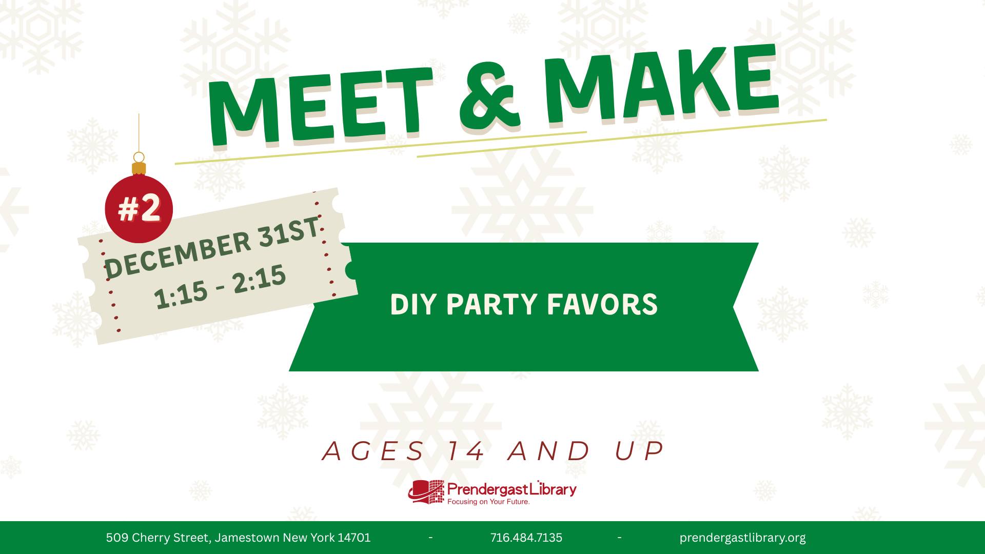 Let's build up to the New Year and make some DIY Party Favors! On December 31st at 1:15-2:15, join us at the library to make your own festive […]