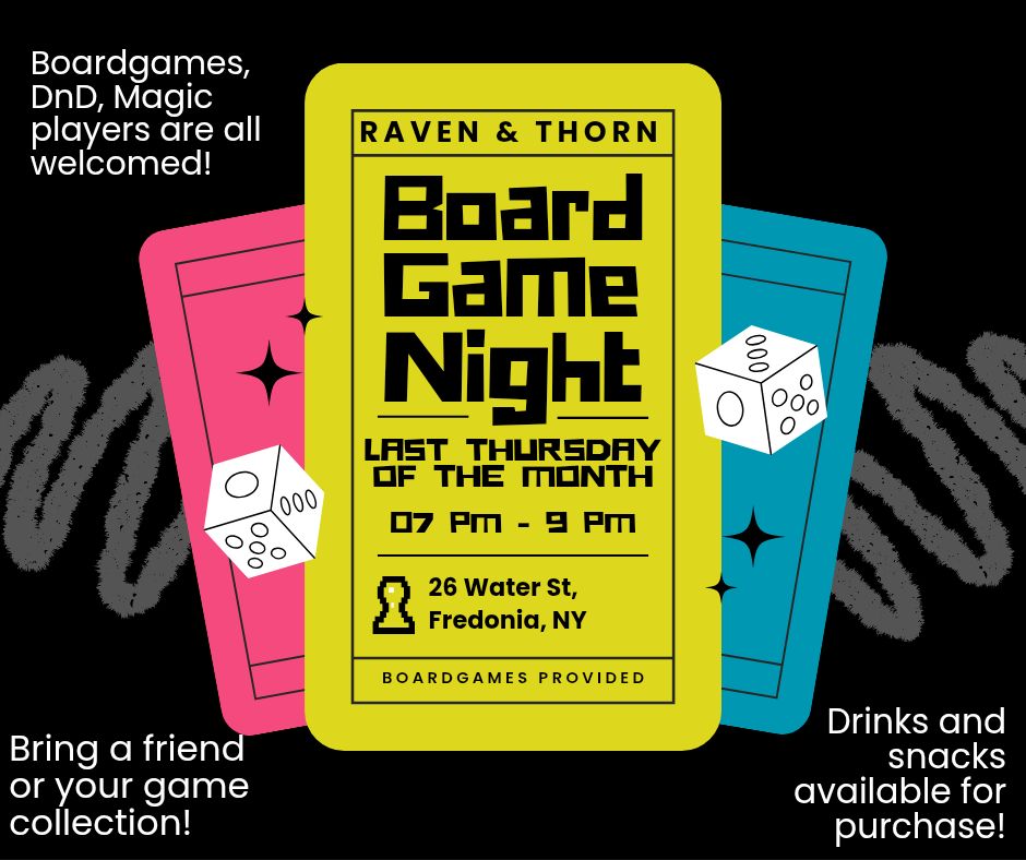 Raven & Thorn 26 Water St, Fredonia, United StatesGet ready to party into 2026 with Raven & Thorn’s Roaring 20s NYE bash—Jazz music by the Fredonia Jazz Society, and prohibition era cocktails all night long! Tickets […]