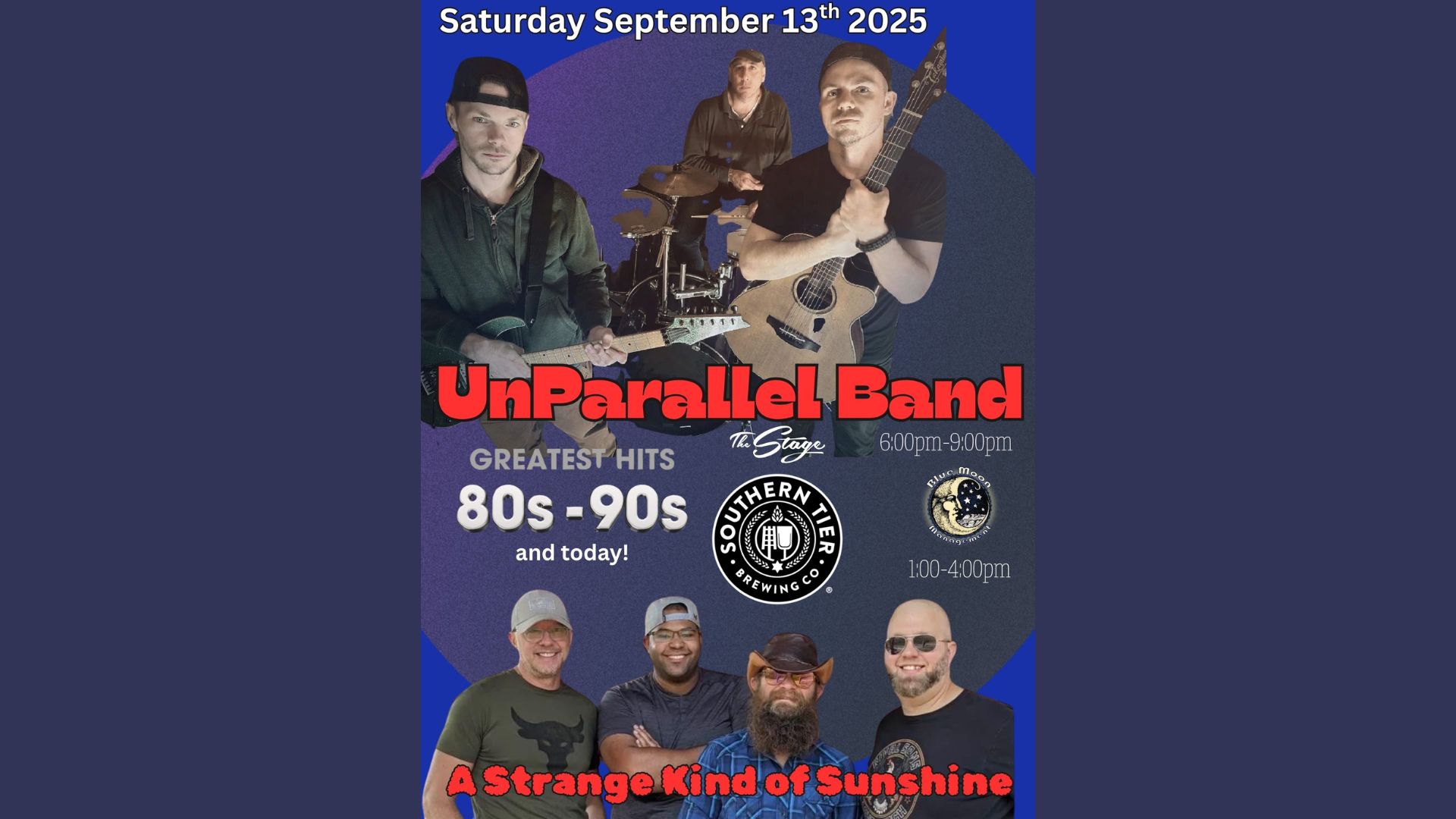 ANNOUNCING.... The Biggest Party of the Summer.... 80's-90's and today's hits..... Featuring: Unparalleled Band and A Strange Kind of Sunshine Saturday September 13th 2025Stage at Southern Tier Brewing […]