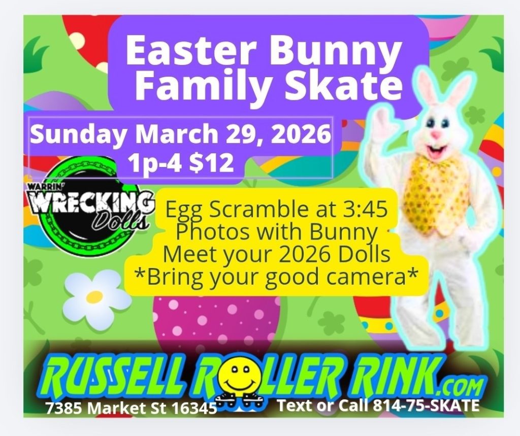 Russell Roller Rink: Easter Bunny Family Skate, 1 – 4 PM