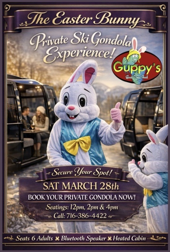 Guppy’s Restaurant & Tavern: Easter Bunny Ski Gondola Experience, 12 – 6 PM
